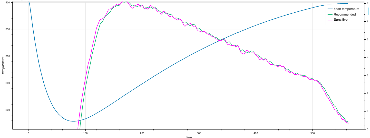 - Không dự đoán được tương lai: ROR 20°C/phút không đảm bảo rằng BT sẽ tăng đúng 20°C trong phút tiếp theo, ngay cả khi bạn giữ mọi thông số không đổi (ET, gas, gió). Lý do là nhiệt động lực học trong lò rang rất phức tạp: